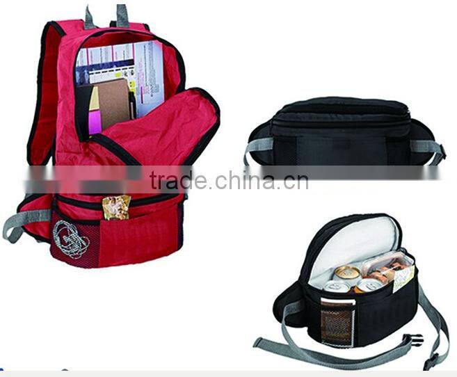 Photo to show-- 2016 BSCI audit factory design Dual purpose foldable backpack with cooler compartment