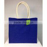 Blue Burlap Beach Shopping Jute Bag Bag With Cotton Handle