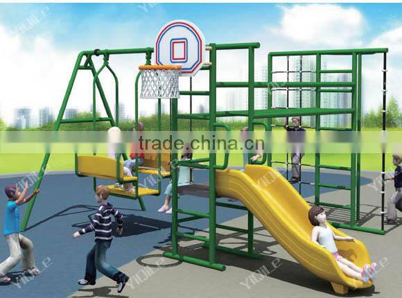 (basketball stand with slide swing set)