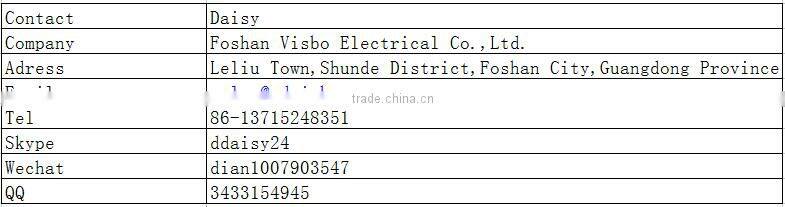 VISBO-one of the most passionate and innovative enterprises of China building electrical field. She is composed by a group of professional senior expert which are full of dream, passion and social responsibility. The headquarters locates in Fusha,the electrical lighting town of Guangdong Zhongshan.Its workshop occupies 30000m.q,it owns kinds of 600 major staff, it equiped with sophisticated production quality testing system,forming an integrated industrial structure of R&D, purchase, production, storage and sales. Relying on its excellent quality and reputation, VISBO products has been exported to many countries and regions of the world.