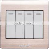 Electrical Wall 1 Gang Switch With Aluminium Wire-drawing Gold Silver Metal Plate