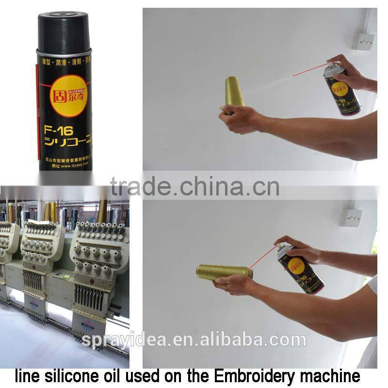 Sprayidea F-18 Silicone thread lubricant special develop for embroidery industry.High purity misty oil.Used on thread or sawing thread.it can prevent thread damage,thread jump,over heat.easy pass,prevent thread damage,form long-last lubricant layer,Anti static,increase the thread flexibility.