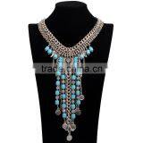 Factory Directly Wholesale New Arrive Bohemian Turquoise Coins Tassel Necklace Chunky Statement Necklace