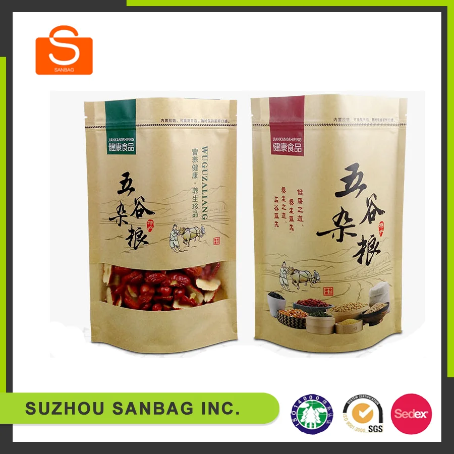 Eco Friendly Aluminum Foil Zip Lock Bag,kraft Paper Stand up Snack Bag