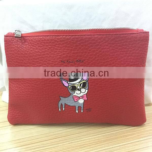 Home > Products > Leather Pouch > Customized Logo Printed Leather Cosmetic Bag With Zipper