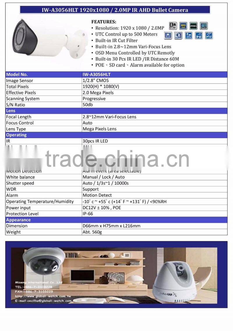 Home > Products > AHD Camera > IW-A3056HLT Bullet 2.0MP 2.8~12mm Lens IR 60m UTC