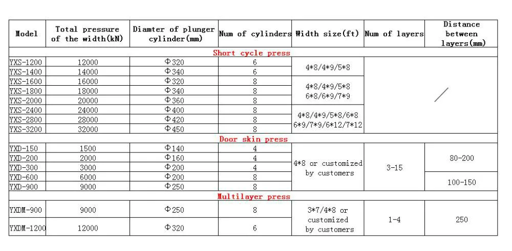 Now we have grown up to be a leader in laminating industry among China.We offer auto and semi-auto short cycle press lines, laminating flooring press, door skin,pur glue melting laminating press ,multilayer press ,lab press and some accessories such as cushion pad , door mould ,etc . End prodtuct size rangs: 4 x 8ft, 4 x 9ft, 5 x 8ft, 6 x 8ft, 7 x 9ft,6 x 12ft and other specs.