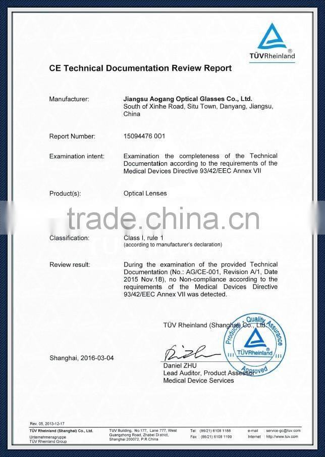 2016 Cr39 Plano /polarized /optical Lens Manufacturers in China
