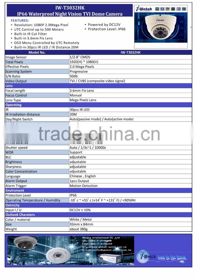 Home > Products > TVI Camera > IW-T3032HK Dome 2.0MP 3.6mm Lens IR20M UTC