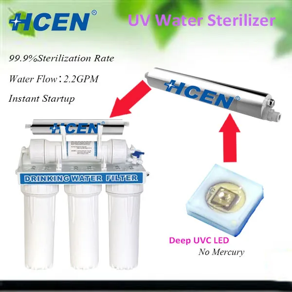 The sterilizer can also be used to replace the traditional 25W mercury vapor UV lamp water sterilizer. With mercury free UV LED water sterilizer, have truely healthy and safe water!