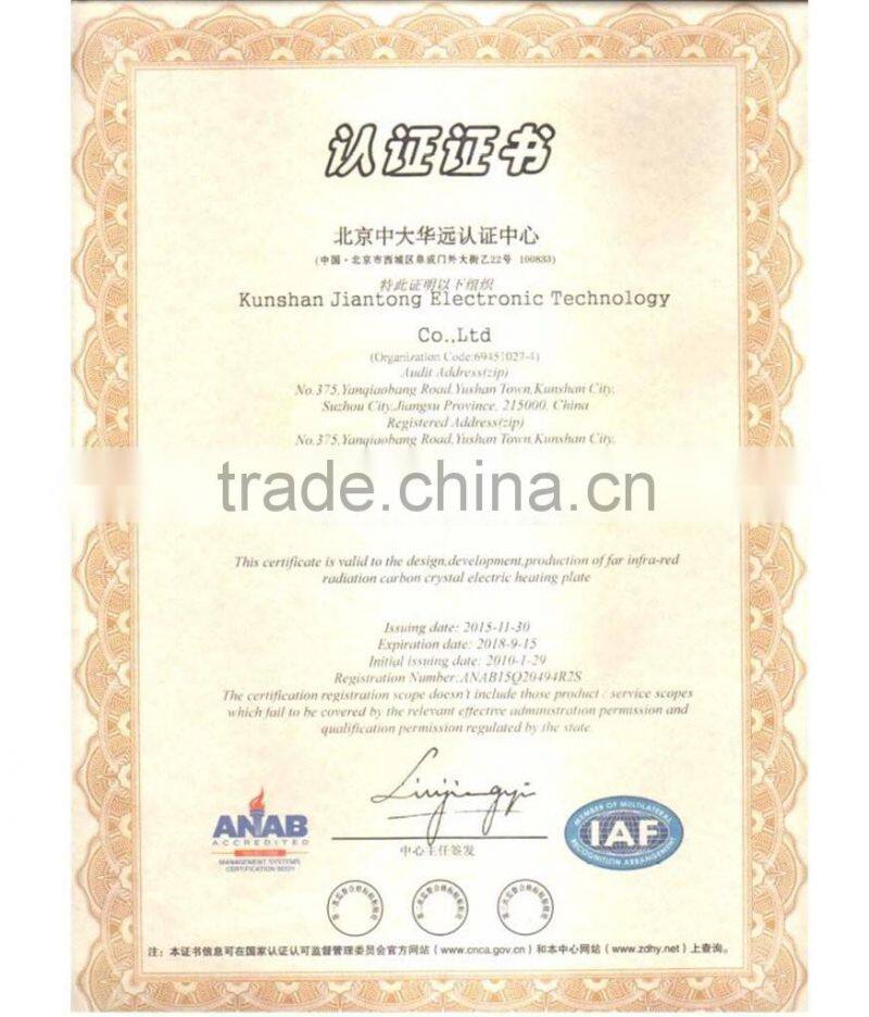 Firemart, a professional brand of carbon crystal heater, was built by Kunshan Jiantong Technology Co., Ltd, who is a well known company in heating industry. Jiantong Technology is located in Kunshan National Hi-tech Industrial Development Zone, near beautiful Yangcheng Lake, with Shanghai to the east and Suzhou to the west, which has superior environment advantages. There are over hundreds hi-tech companies from all over the world in this science park. The company has already got the ISO014001, ISO9000, CCC, CE and ROHS certifications.