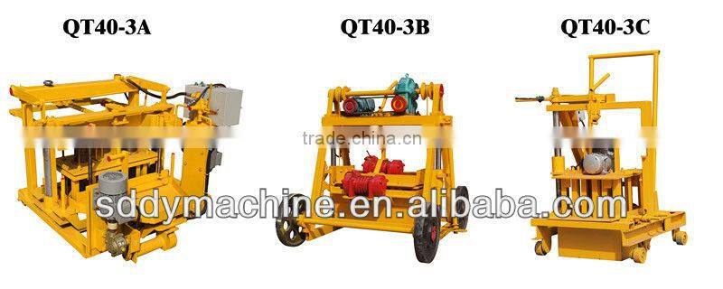 1). QT40-3B Mobile hollow block machine advanced techniques, reasonable structures, this machine adopting mould vibration,it can manual moving ,forward, backward, turn direction, this machine is of small size, higher production, easy to operate, high efficiency, low maintenance.