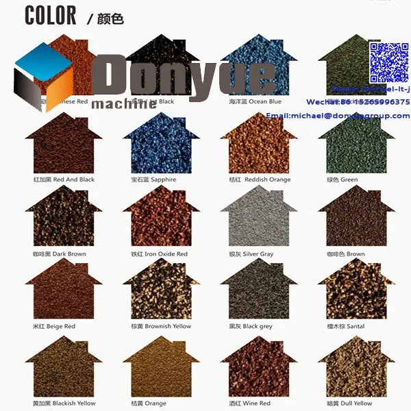 >>> Color sand layer--- to resist the ultraviolet ray, lower the noise when raining, and increase the decoration appearance.