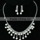 Bridal Faux Pearl Crystal Necklace Earrings Set CS1162