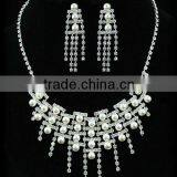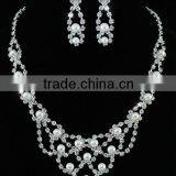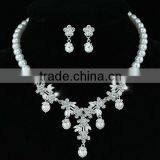Bridal Flower White Faux Pearl Crystal Necklace Set CS1215