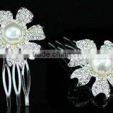 2 Pcs X Bridal Flower White Faux Pearl Hair Comb CT1378