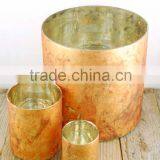 Hammered Metal With Copper Leaf Interior Accents Votive Wind Light Candle Holder