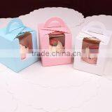 Cupcake Paper Boxes With Handle, PVC Window Designed Cookie Packing Box