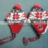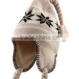 Wholesale Winter Knitted Earflap Hat With Ball Top Snowflake Pattern in China