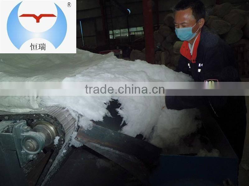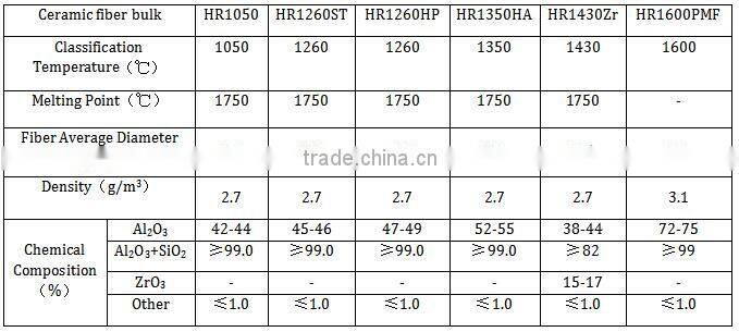 Hengrui ceramic fiber bulk is produced by melting the very pure raw materials in high temperature, take use of spun or blowingmethod with characteristics of stable chemical performance, resistance to the erosion of most chemicals. The physical propertylike refractory and insulation keep same when meet with oil,water or steam. Ceramic fiber blanket/ felt/ board/ paper/ cloth/ ropeand other ceramic fiber products can be produced by bulk through further processing. Hengrui ceramic fiber bulk is a kind of insulating materials which has these characteristics, such as light-weight, antioxidation, low thermal conductivity, softness, anti-corrosion, low heat capacity, sound insulation and so on.