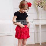 2016 Princess Stylish Fancy Frock Designs Baby Girl Red Chiffon Dress School Night Dress
