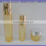 Jiangsu Tongzhou Medical Chemistry glass production Factory(Tongzhou Huajing glass production Co.,Ltd.)produces all kinds of glass bottles professionally.It located in the Yangtze River Delta and Shanghai Economic Development Zone, nears Nantong Airport and Sutong Bridge.The water and land transportation is very convenient. It is a Medium-sized enterprises with long history that makes glass bottles of cosmetics, food, medicine.The glass production has high Technology skills, fashionable, with rich colors and favored by the market. It exported to overseas countries and regions.In 2000 the international packaging technology trade show, cosmetic bottles were award the "Golden Award "as excellent products.