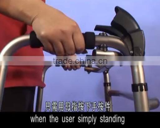 A. This section folding walker! Gently press the middle of the marbles , you can easily fold up the walker,