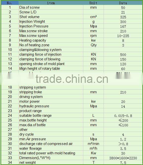 | Plastic Processed | PP | Blow Moulding Type | Injection Blow Moulding | |