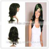 Top Fashionable Black Flicked Wigs With Green Highlights
