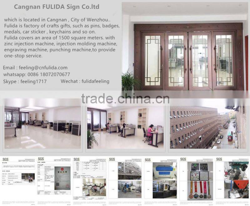 FULIDA has its own factory, covers an area of 1500 square meters, has advanced equipment, zinc injection machines, injection molding machine, engraving machine, printing machine, die-casting machine, etc., complete equipment, one-stop service. Factory under the price is competitive, pay attention to quality, our factory have QC, in every link of quality inspection.
