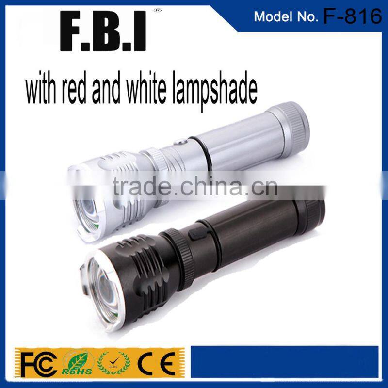 Multi-function adjustable focus Red and white lampshade portable flashligh