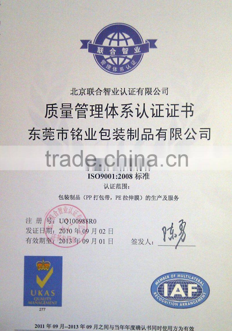 DONGGUAN MINGYE PACKING MATERIALS Co., Ltd. was founded in 2007, is a professional PACKING products production enterprises with rich experience, the company is located in Sha hu kou, Changping Town, Dongguan City. The main products include: PP(polypropylence) &PET strap,PE stretch film, BOPP adhesive tape,PE rop and other packing products.