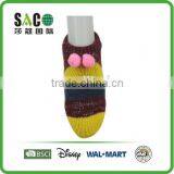 Yellow Brown Navy Contrast Color Stripe Acrylic Floor Footie With Pink Pom Pom