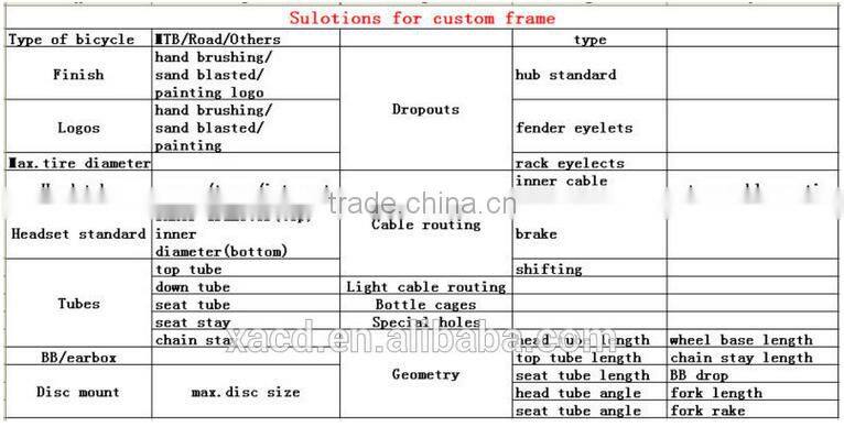 You can use your own brand or ours. If you use our brand, our professional design team will help you design the Logo shape on your frame head tube or top tube or down tube, Our research team will research new design according to your market.
