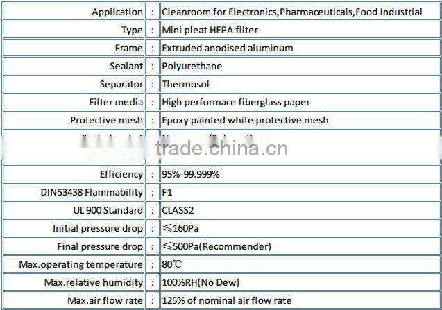 Home > Products > Mini pleat HEPA/ULPA Filter > ISO CE SGS & Clean Room Mini Pleat Hepa Filter