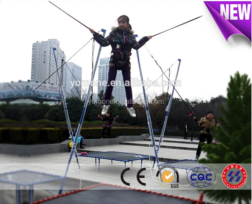 Bungee trampoline is an amusement equipment which is suitable for kinds of people. It is popular with children. This product is safety, easy dismounting, covers small floor area, practical for wide applicable people. It is can be used at park, stadium, tourism, marketplace such like these public places.