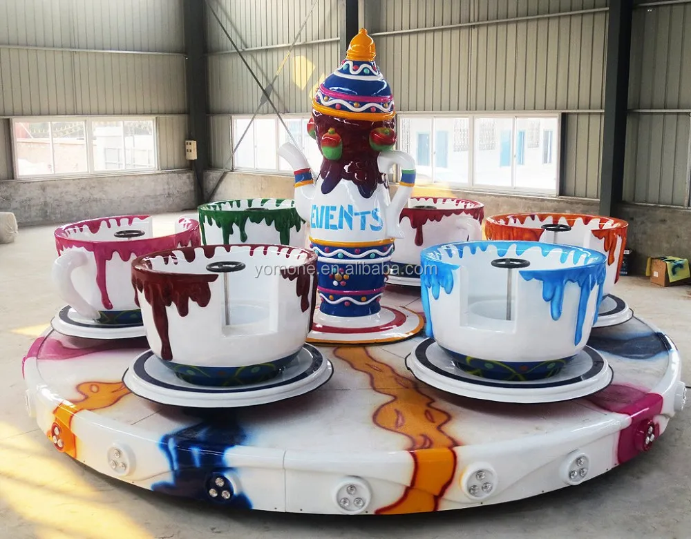 1) Tea cup rides is the latest amusement equipment, when chassis is rotating in one direction, each small cup will be rotating in the opposite direction.