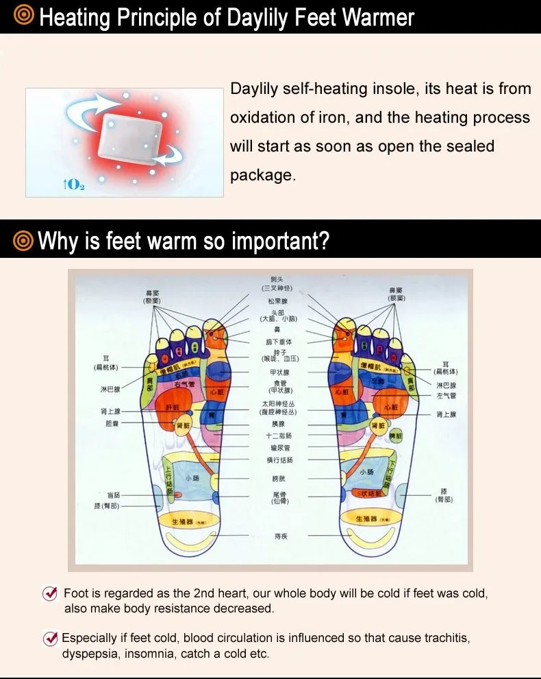 Foot is regarded as the 2nd heart, our whole body will be cold if feet was cold, also make body resistance decreased.