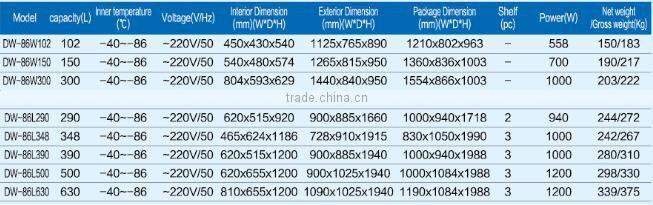 The inner temperature can be adjusted at the range of -40℃~-86℃, the temperature regulation accuracy is 0.1 ℃;