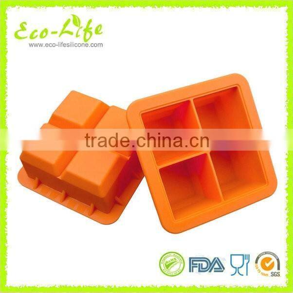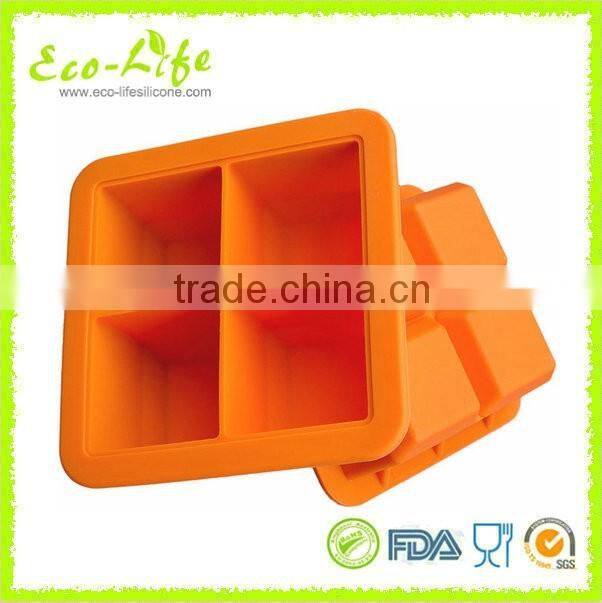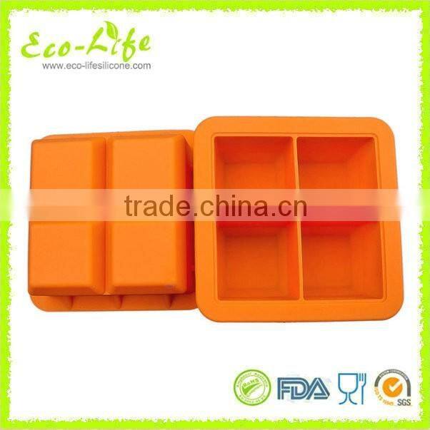 High Quality 4 Cavities Square Silicone Ice Cube Tray With Lid, Baby Food Storage Box,Freezer Tray