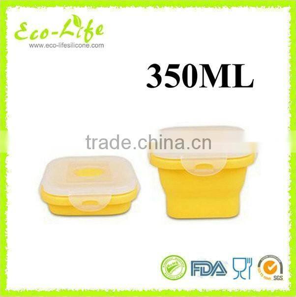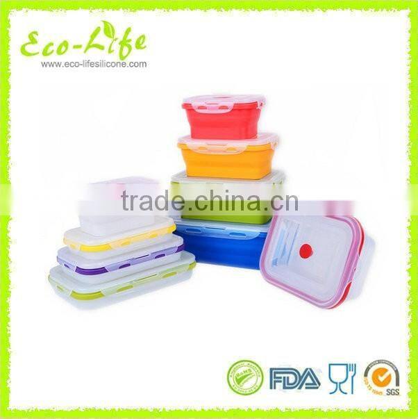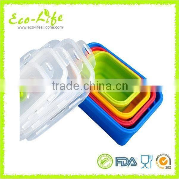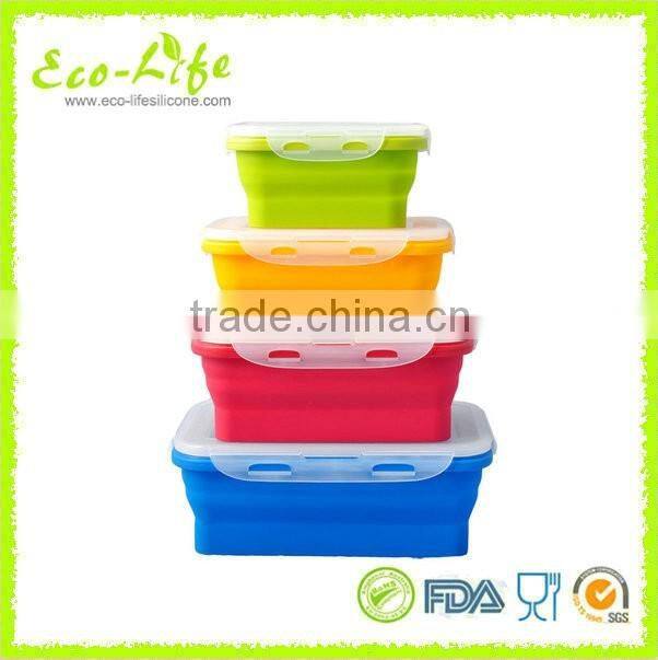 2016 Hot Selling Microwave Safe Air-tight Collapsible Silicone Lunch Box Set of 4 Pieces/ Silicone Folding Lunch Box