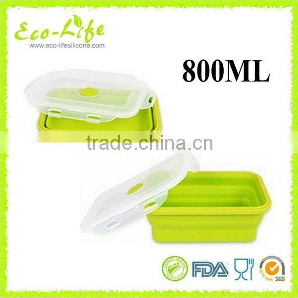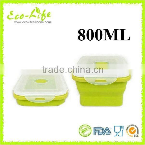 BPA Free FDA LFGB 800ML Silicone Air Tight Collapsible Lunch Box, Foldable Food Container, Microwave/Oven/Fridge/Dishwasher