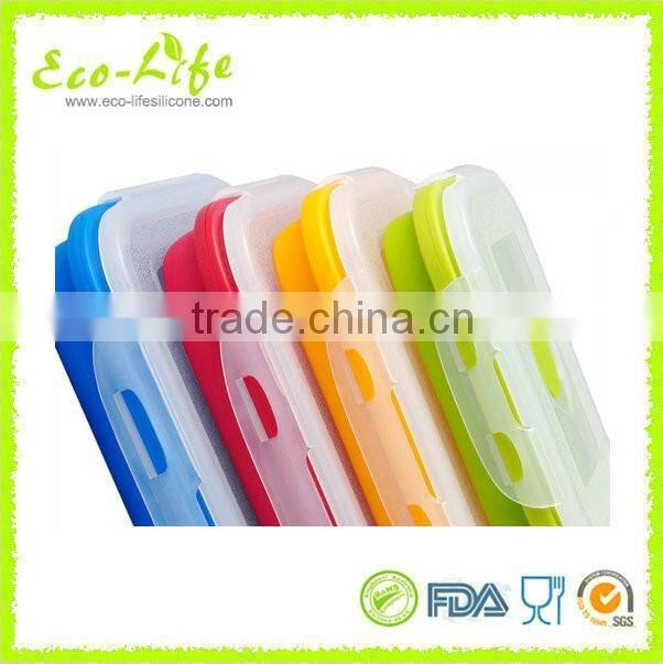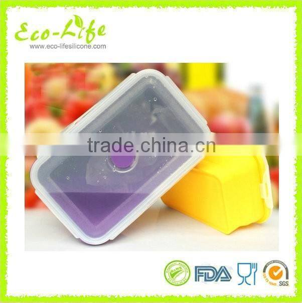 100% Silicone Color Frame Collapsible Lunch Box 600ML, Folding Food Fruit Container For Microwave Oven