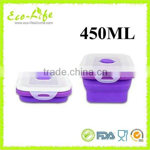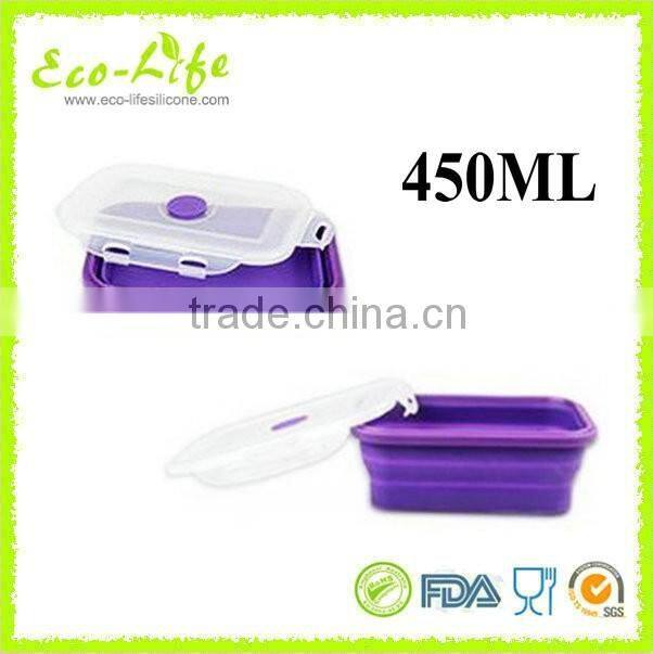 High Temperature Endurance 450ML Silicone Collapsible Lunch Box With Lock, Foldable Food Container