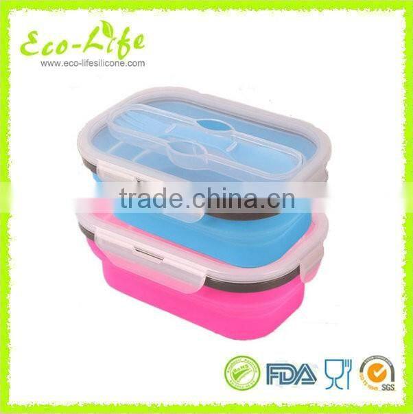 Food Safe 600ML Silicone Collapsible Lunch Box, Foldable Container For Microwave