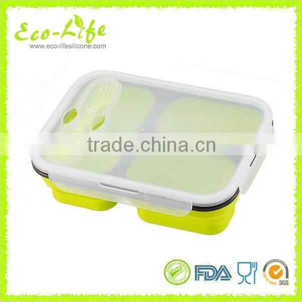 3-compartment 600+250+250ML 100% Pure Silicone Color Frame Collapsibe Lunch Box , Food Fruit Container