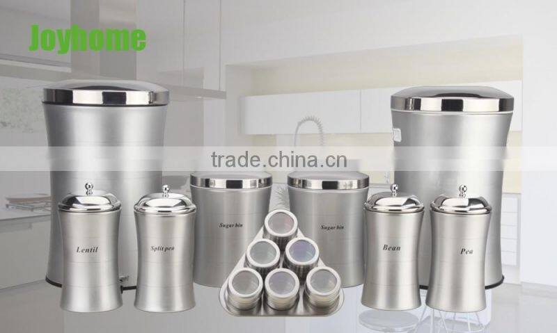 2016 New Design Stainless Steel Bread Bin Biscuit Tea Coffee Sugar Canister Set