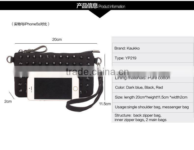2016 Europea style factory directing selling high quality women blue clutch bag with rivet