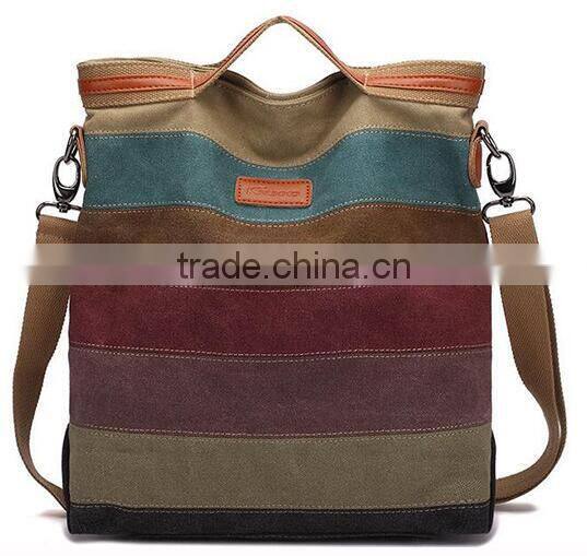 Home > Products > Shoulder Bag > Women Multi Color Canvas Striped Cross Body Bags Fashion Satchel Bags Top Quality College Canvas Tote Handbags