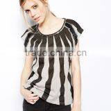 Wholesale Women t Shirt Printing t Shirt Striped t Shirt With Sequin Detail Printed t Shirt